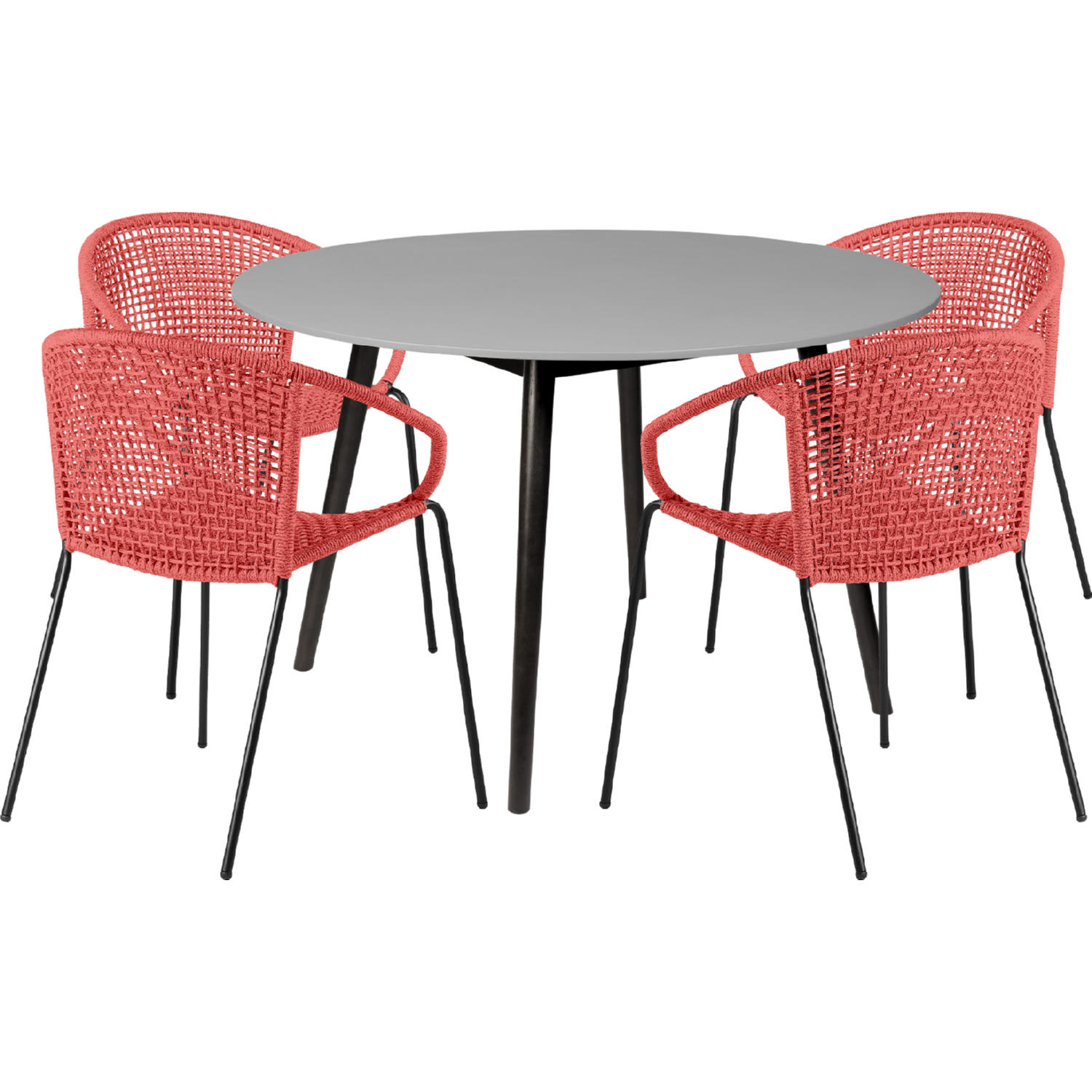 Armen 840254336612 Sydney & Snack 5 Piece Outdoor Dining Set in Black Eucalyptus & Brick Red Rope