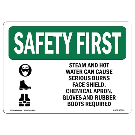 OSHA SAFETY FIRST Sign, Steam And Hot Water Can Cause W/ Symbol, 18in X 12in Decal