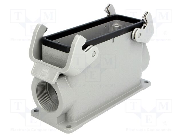 SURFACE MOUNT HOUSING, SIZE 24B, METAL, 2 LEVER; Product Range:Han B Series; Connector Mounting:Surface Mount; Rectangular Shell Size:24B; For Use With:Han 24B Hoods & Inserts; Locking Type:2 Lever; Accessory Type:Side Entry Housing RoHS Compliant: NA