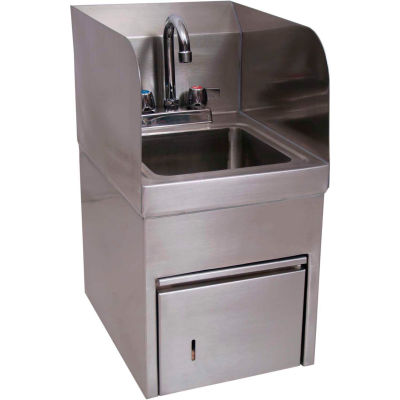 BK Resources BKHS-D-SS-SKTS-P-G Wall Mounted Stainless Steel Hand Sink with 3.5" Gooseneck Faucet and Integrated Towel Dispenser, 9" x 9" Bowl