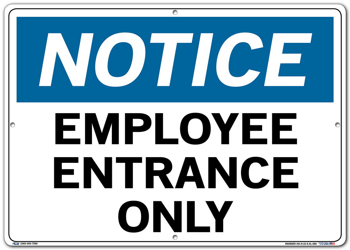 Vestil SI-N-22-E-AL-080 Notice Sign Aluminum .080" Overall Size 20.5"W x 14.5"H Employee Entrance Only , 14.5" Height, 20.5" Wide, 0.08" Length