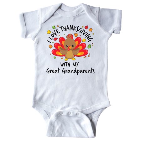 <li>Makes a great gift for a grandchild who loves spending Thanksgiving with their Great Grandparents.</li> <li>Our unisex one pice baby bodysuit make great gift for newborns, babies, infants, baby showers and expectant moms.</li> <li>Quick & easy diaper changing with reinforced three-snap closure.</li>