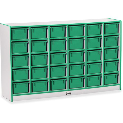 Jonti-Craft Rainbow Accents 0431JCWW119 30 Cubbie-Tray Mobile Storage with Bins, Green