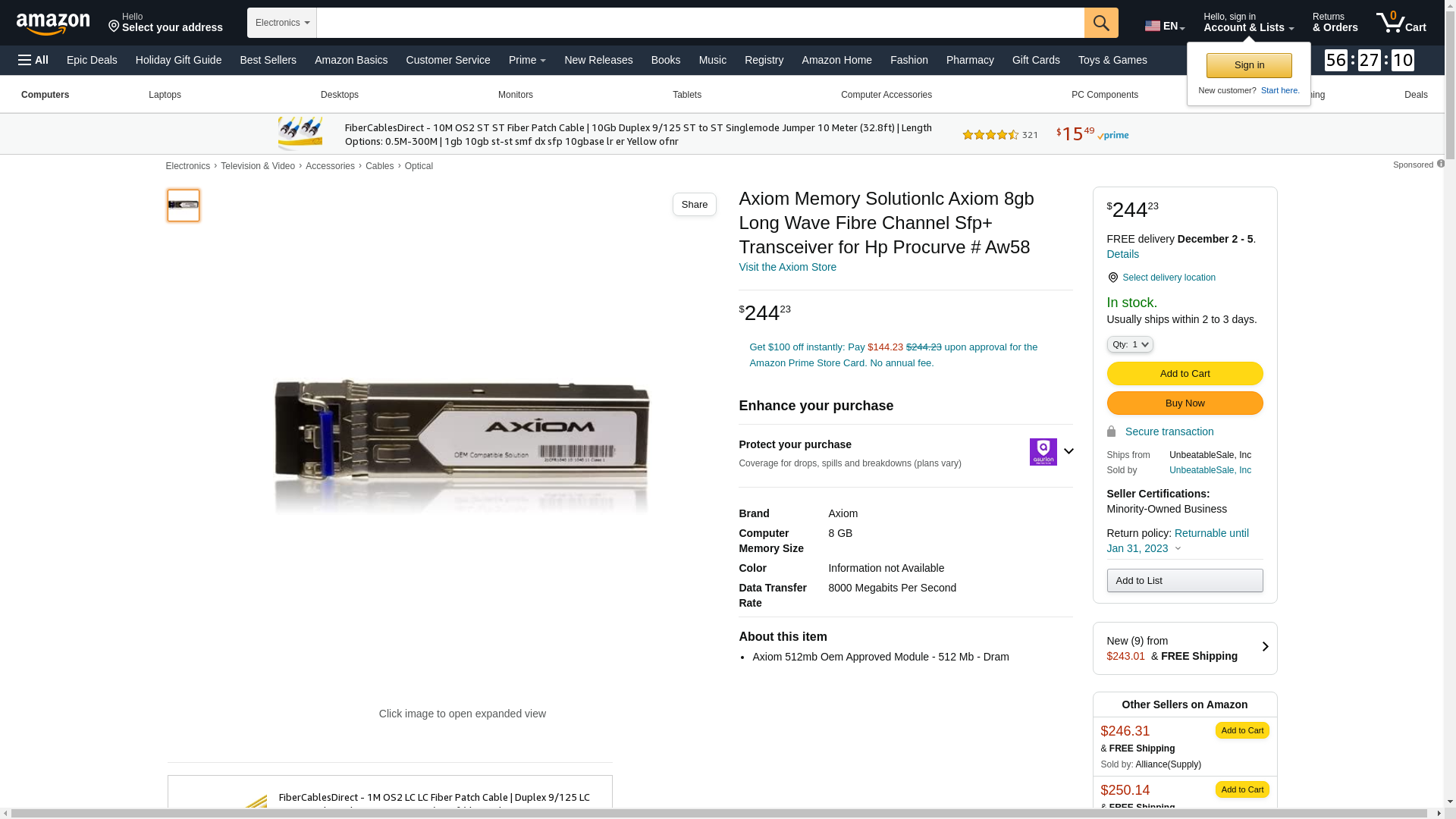 Axiom Memory Solutionlc Axiom 8gb Long Wave Fibre Channel Sfp+ Transceiver for Hp Procurve # Aw58