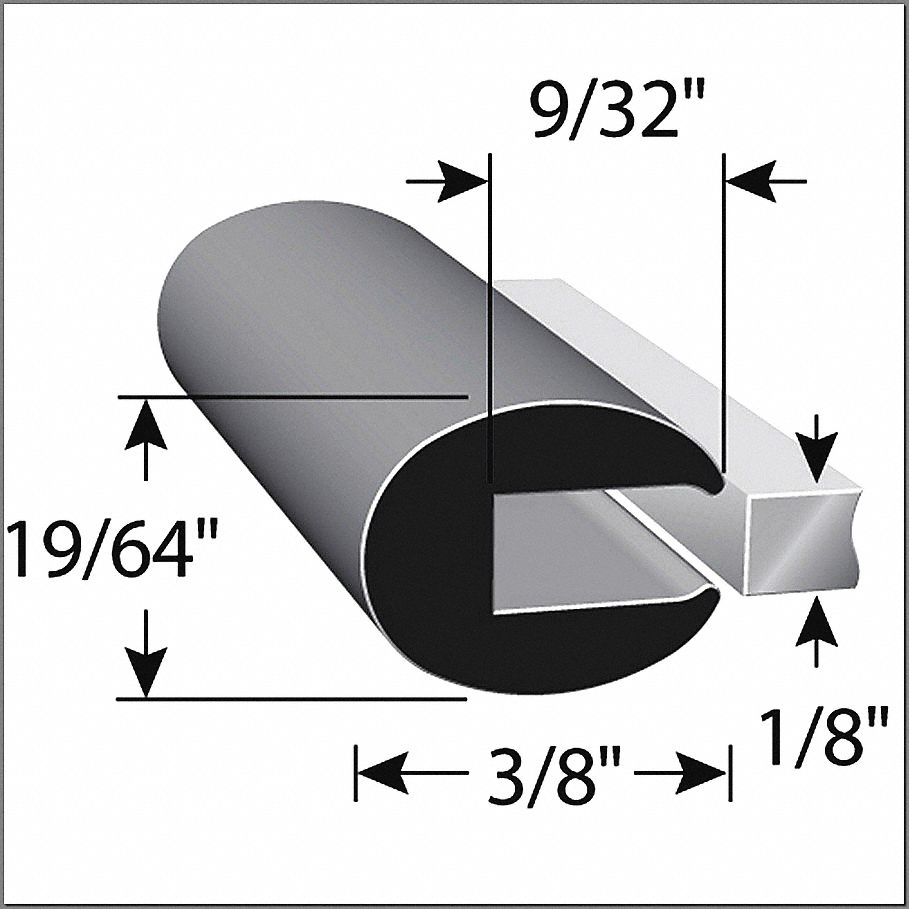 TRIM SEAL, ROUNDED EDGE, 1/8 IN GAP, BLACK, 0.375 IN LEG, 500 FT L/0.297 IN W, RUBBER