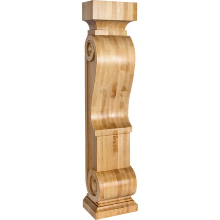 The elaborate spirals and deep curves on this fireplace corbel are inspired by the Scandinavian Romanesque architecture style. It is topped with a bold squared block, merges into the curves and carved spirals of the column, and comes to rest on a beveled square base. This magnificent corbel is perfect to flank a fireplace or accent a kitchen island. It's one of the largest decorative corbels offered by Hardware Resources and is perfect for completing the look you're searching for. Overall measurements: 8" W x 6" D x 36" H. **Photo not species specific** Features: Apply your choice of wood stain Elegantly carved from premium quality wood Covered by a Limited Lifetime to the original purchaser Perfect for fireplaces, mantels, counters and more where you need that statement look Individually wrapped to control moisture content Quick sanding and it's ready for paint or stain One of the largest corbel designs available from Hardware Resources Specifications: Height: 36" Width: 8" Depth: 6" Elements: Fireplace Corbel, Fire Place Corbel, Mantel Corbel, Fireplace Bracket, Mantel Bracket, Counter Corbel, Counter Bracket, Island Corbel, Fireplace Column, Fireplace Post