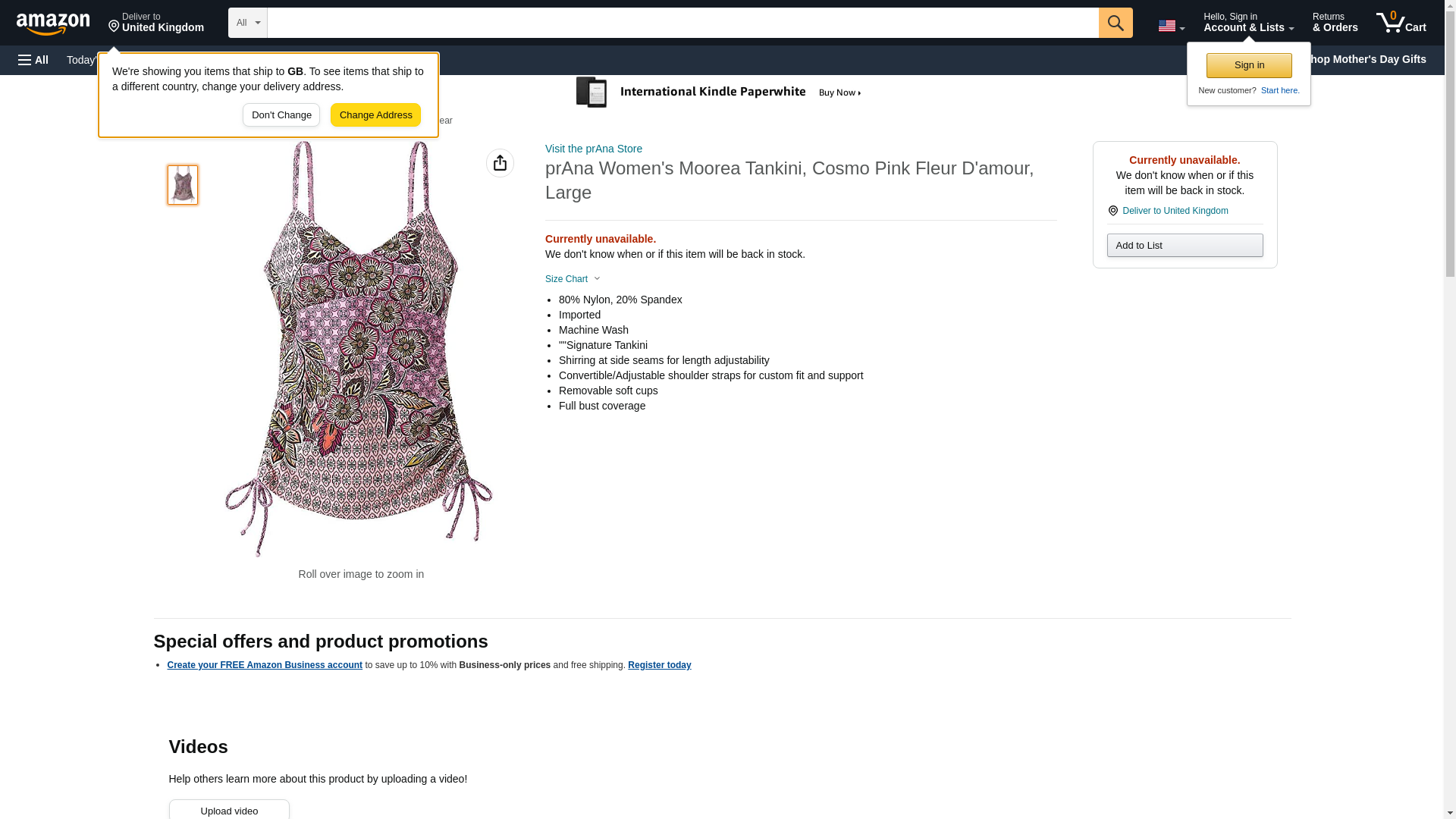 The Prana Women's Moorea Tankini Top has a flattering neckline and an empire seam to keep you beautiful at the beach. It also protects you from the sun's harmful UV rays, and a rubber elastic at the straps and removable cups give you extra support for the surf.