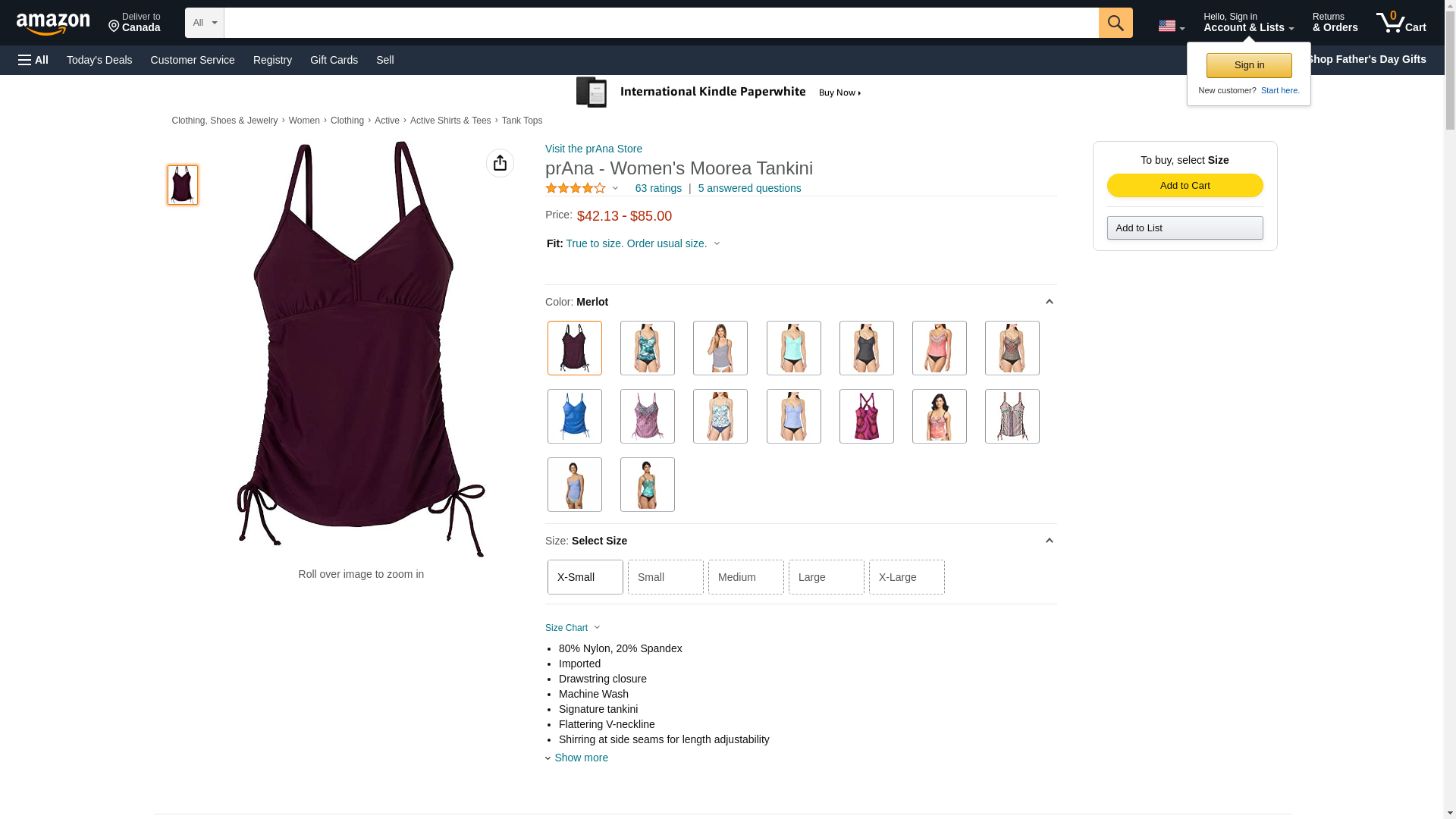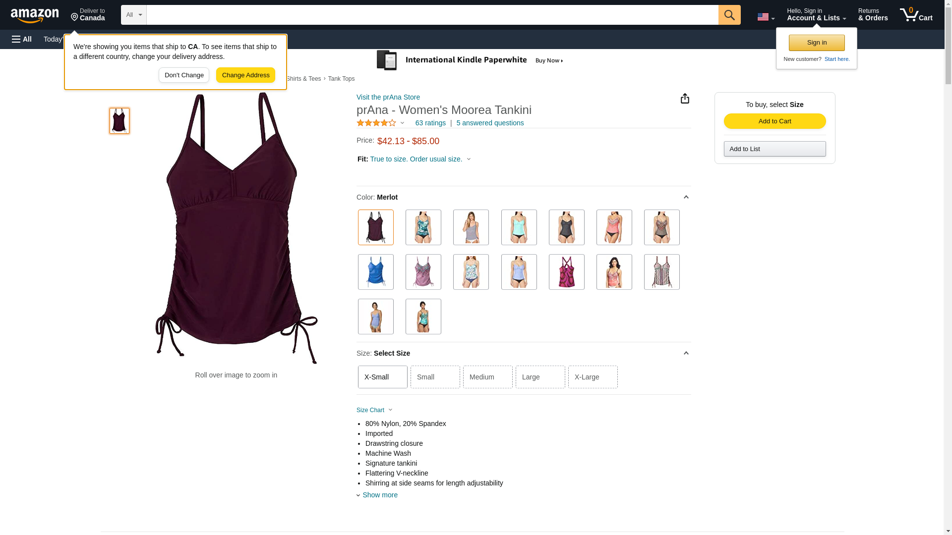 prAna Living Women's Moorea Tankini Top, Large, Merlot