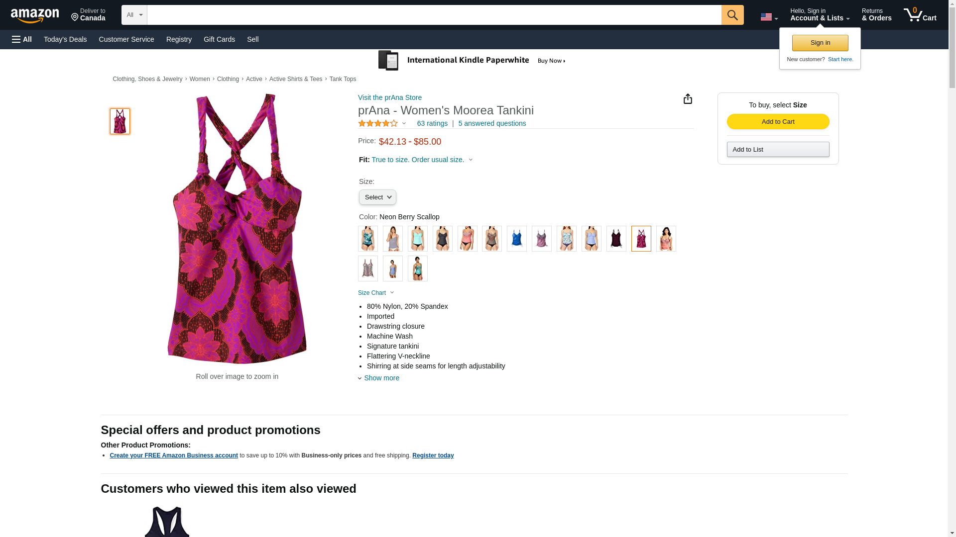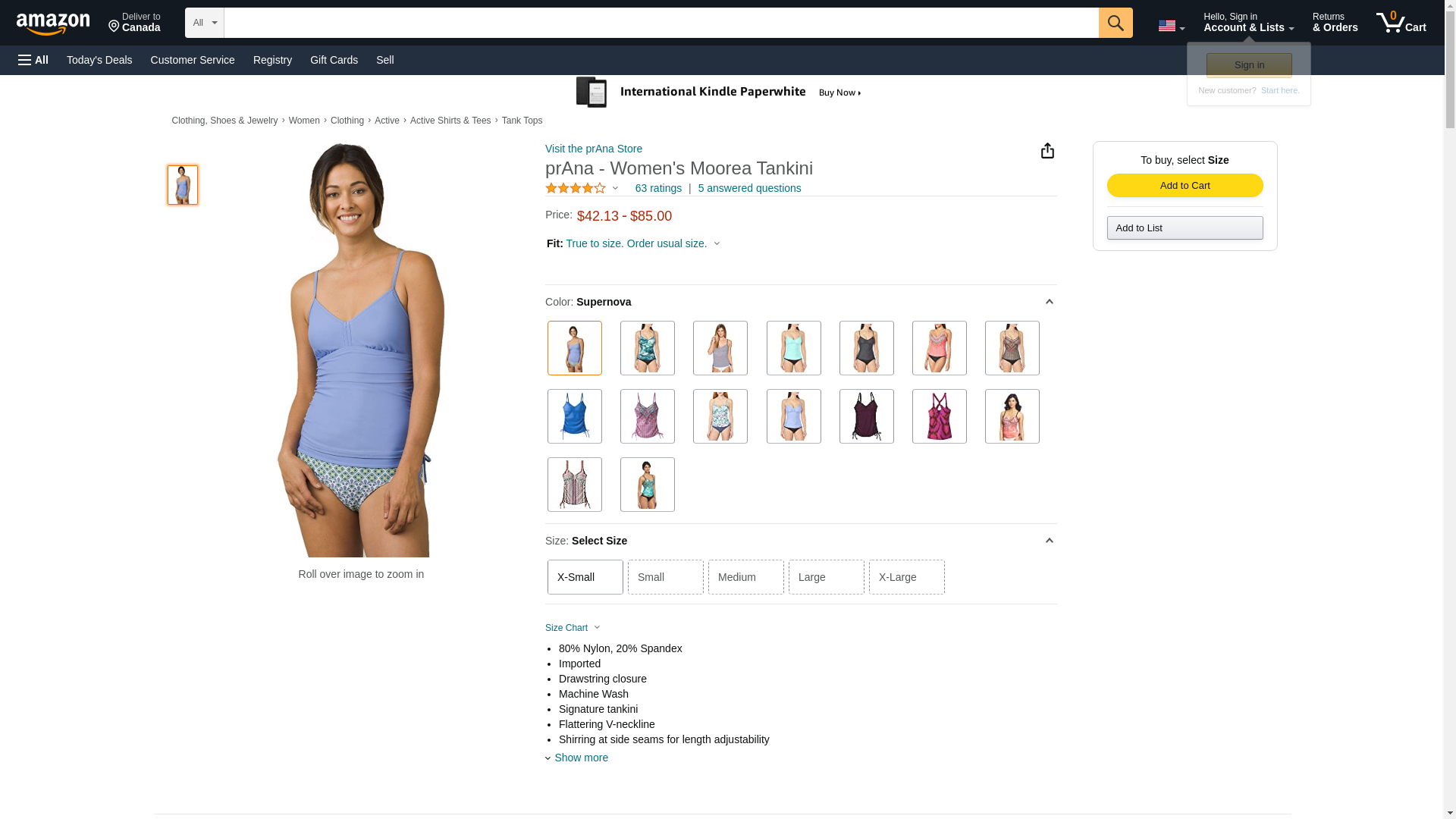 prAna Women's Moorea Tankini, X-Large, Supernova