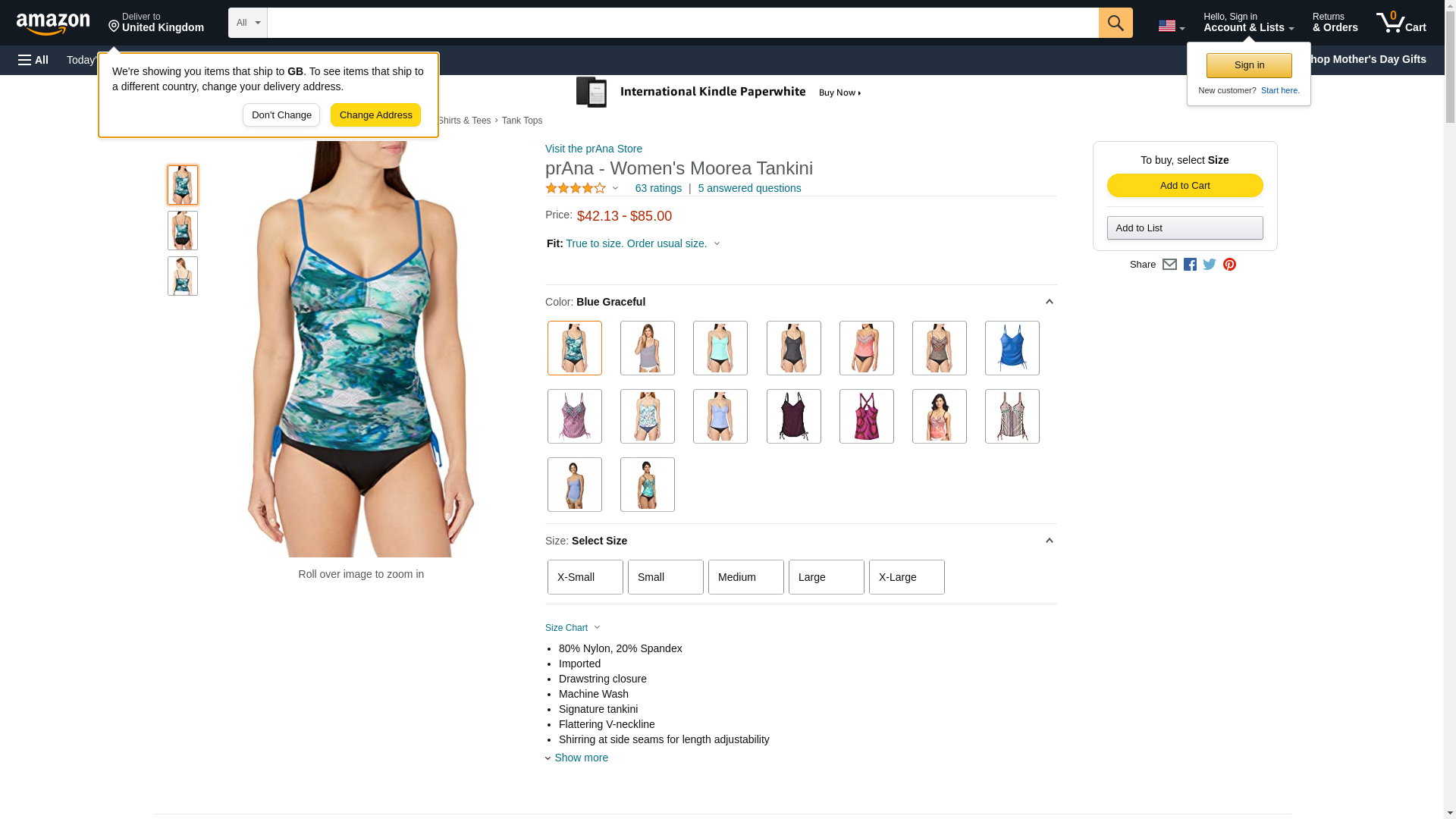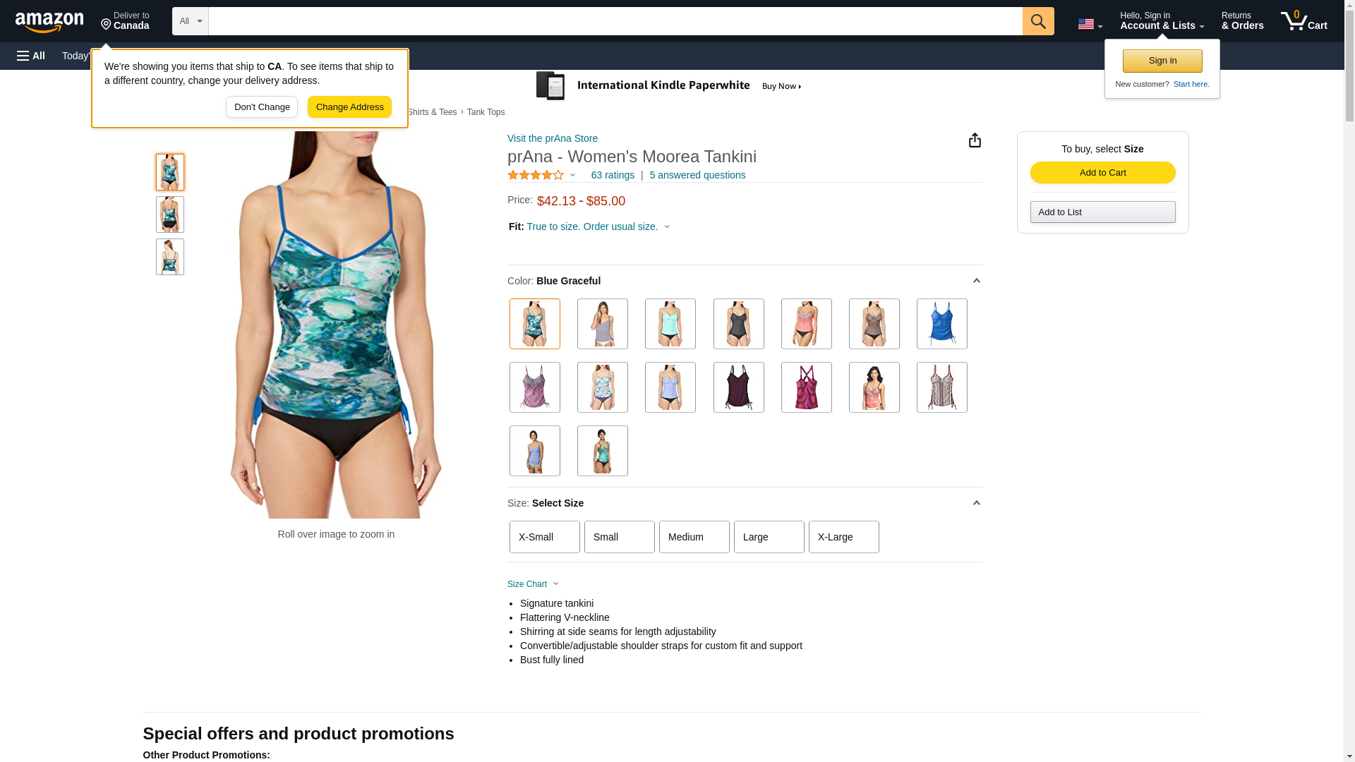prAna Women's Standard Moorea Tankini, Granite Bonita, XSmall