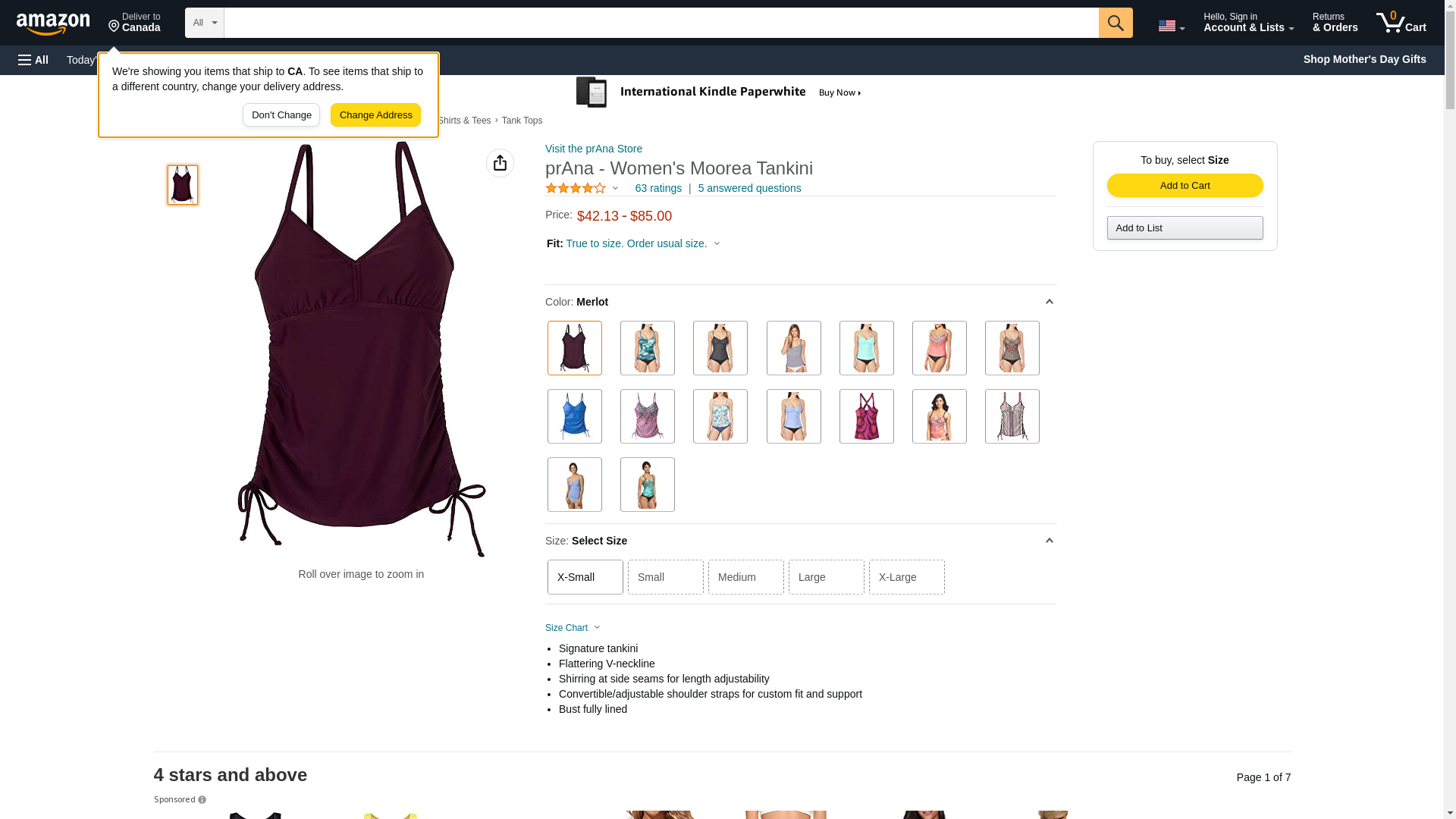 prAna Living Women's Moorea Tankini Top, X-Small, Merlot