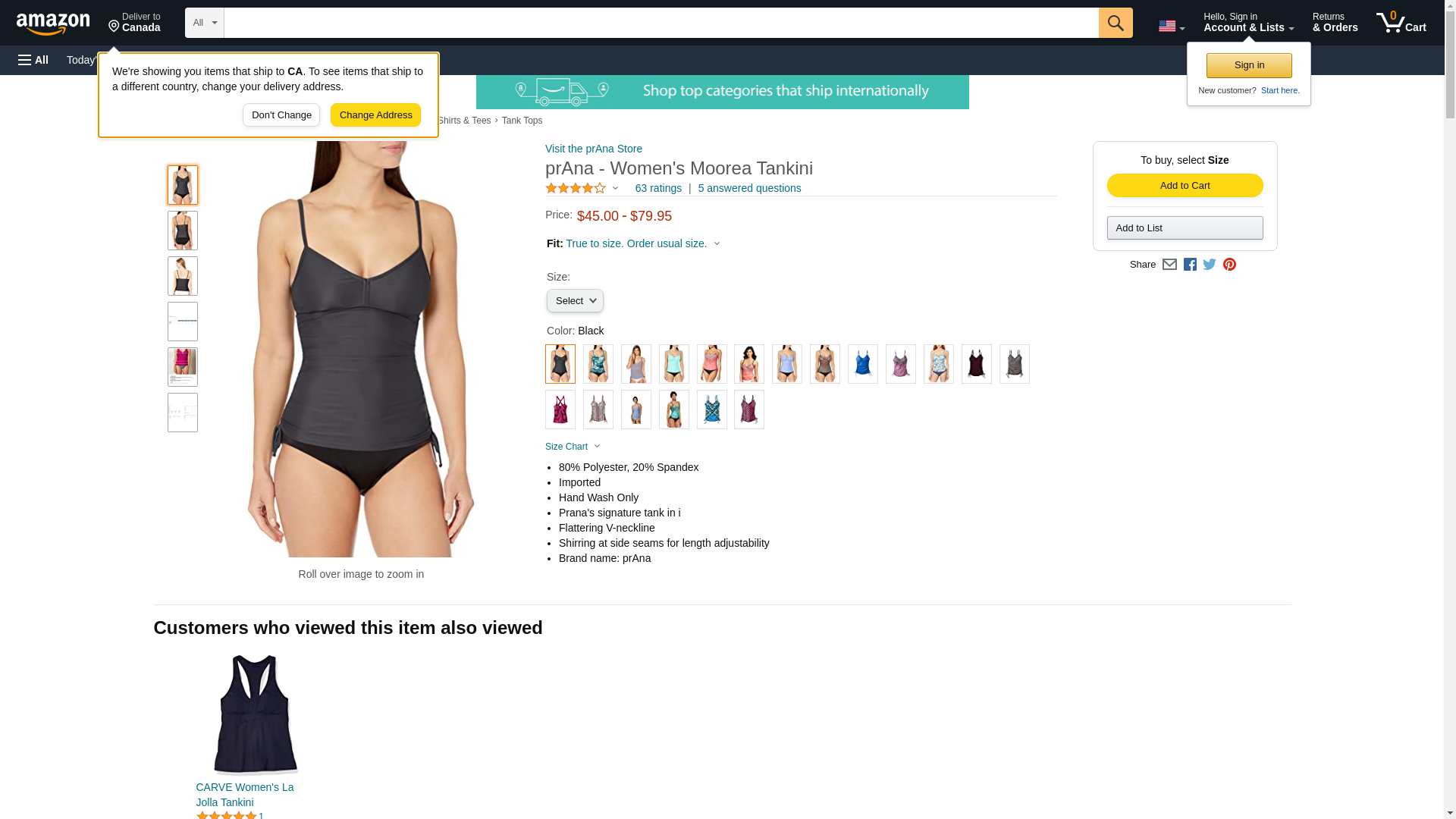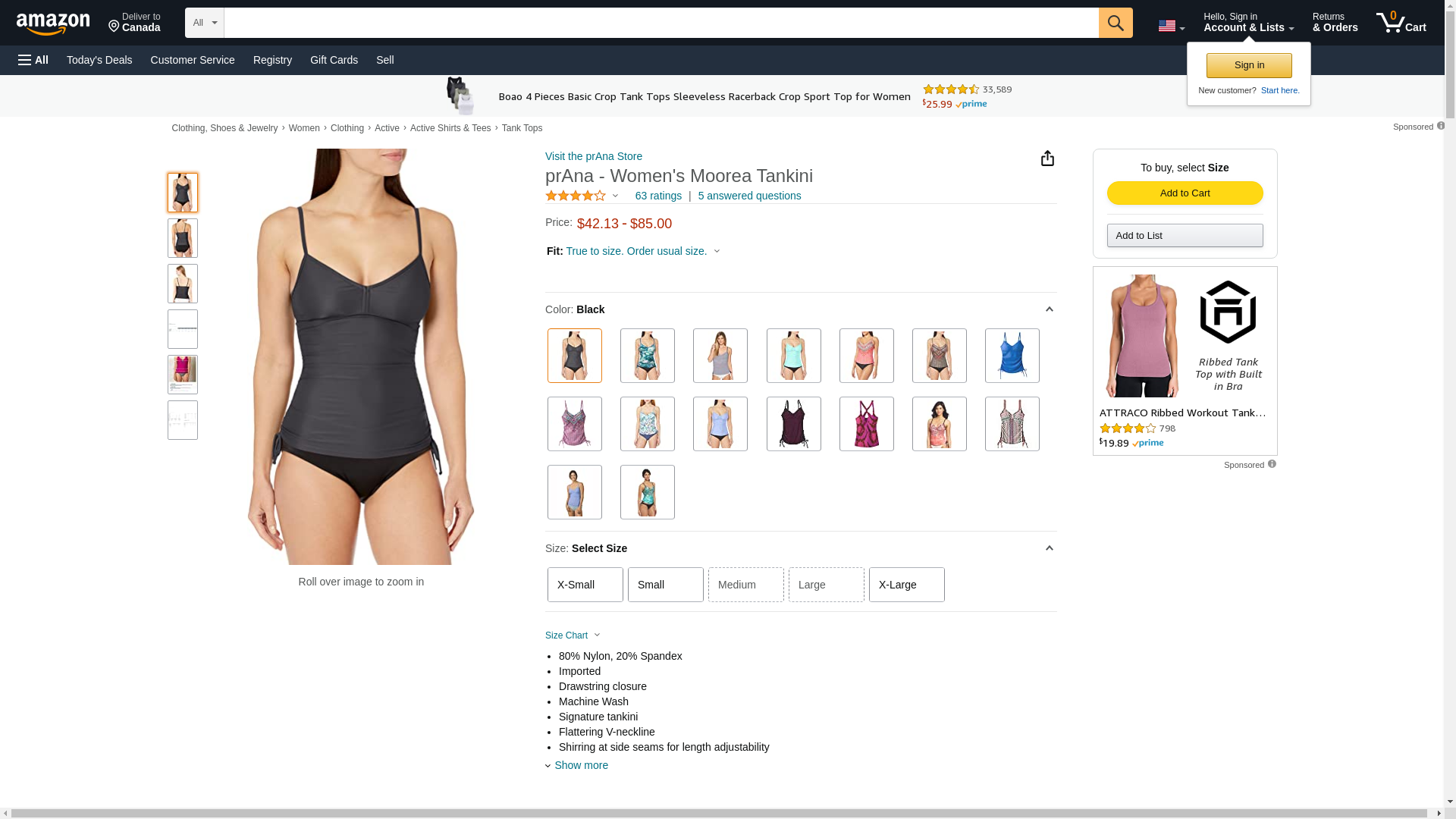 Prana Women's Moorea Tankini Top Coal Namaste Swimsuit Top XS (Women's 0-2)