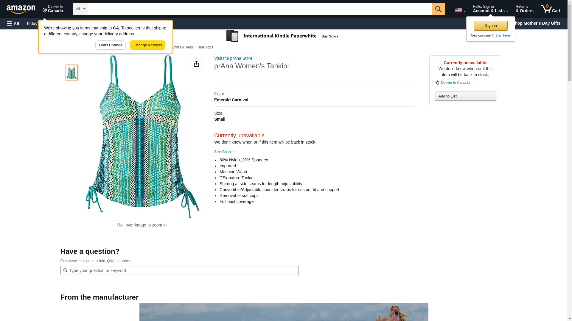 prAna Women's Moorea Tankini, Small, Emerald Carnival