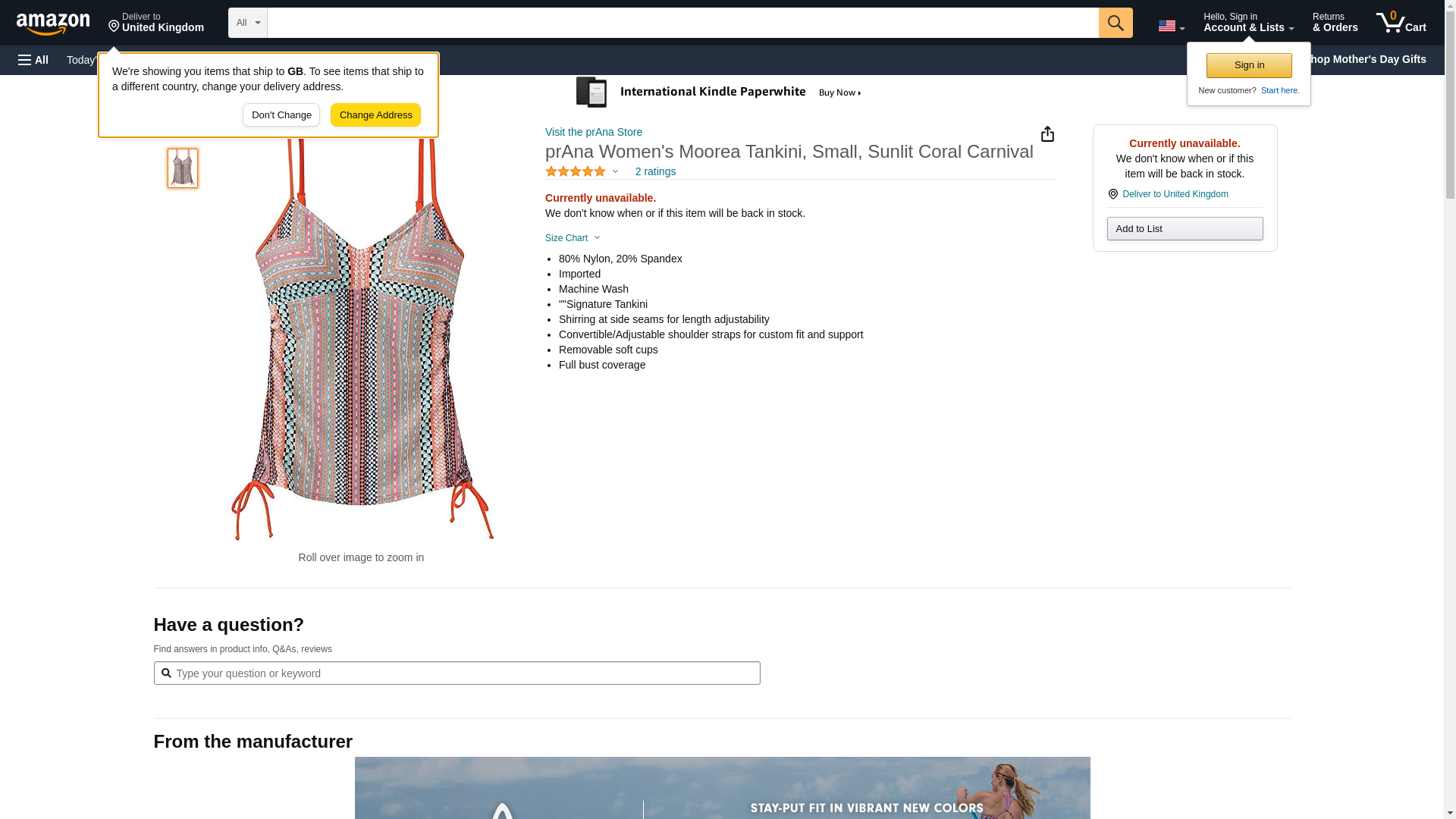 prAna Women's Moorea Tankini, X-Small, Supernova