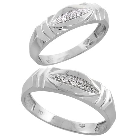 10k White Gold Diamond 2 Piece Wedding Ring Set His 6mm & Hers 5mm, Men's Size 8 to 14