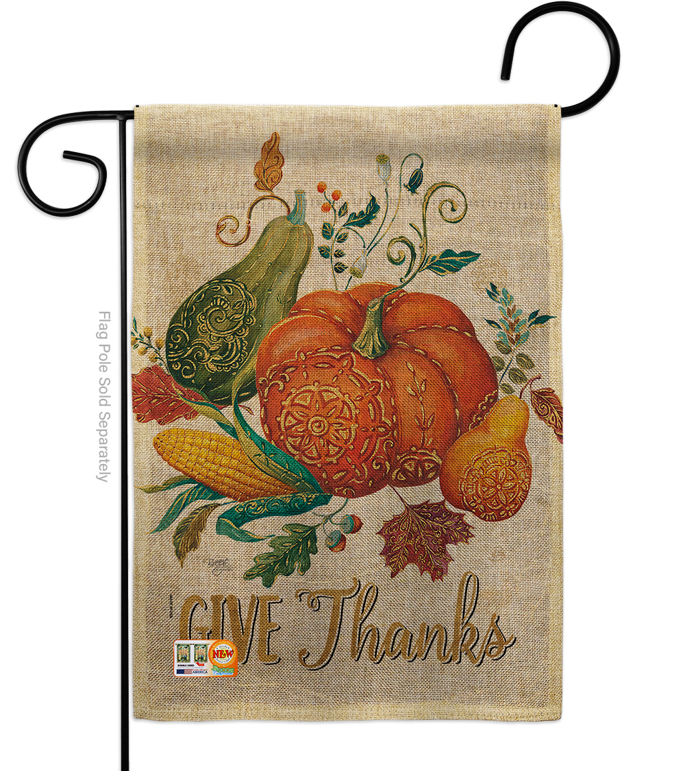 Thanksgiving Beautiful Mini Garden Flag Breeze Decor have variety of Garden Flag for all occasions Uniquely design for hanging indoor or outdoor use We are committed to offering you exceptional values Our customers enjoy displaying our Garden Flag for longer periods For more than a decade weve been dedicated to manufacturing flags with no comparison in quality and beautiful designs Our flags are made with our Pro Guard material that is soft to the touch and designs can be read correctly on the flag A feature that our customers will love We are committed to using ecofriendly inks that wont leave a foot print in our environment Specifications. Theme Thanksgiving. Material Weather Resistant Double Burlap. Print DoubleSided. Readable Readable Both Sides. Stitching Double Stitched. Display Vertical. Hang Type Sleeve. Artist Daphne Brissonnet. Country of Origin Printed In USA. Garden Flag Size 13 x 185. Weight 017 lbs