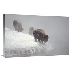 Global Gallery American Bison Along Snowy Riverbank, Yellowstone NP, Wyoming-Canvas Art-36"x24"