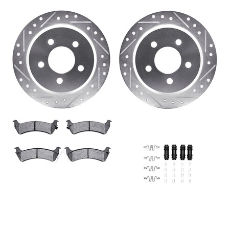 Rear - Dynamic Friction Company Brake Rotors - Drill/Slot - Silver with Ceramic Brake Pads and Hardware Kit 7312-42018