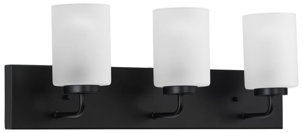 Progress Lighting Merry Collection 3-Light Etched Glass Matte Black Transitional Bath Vanity Light