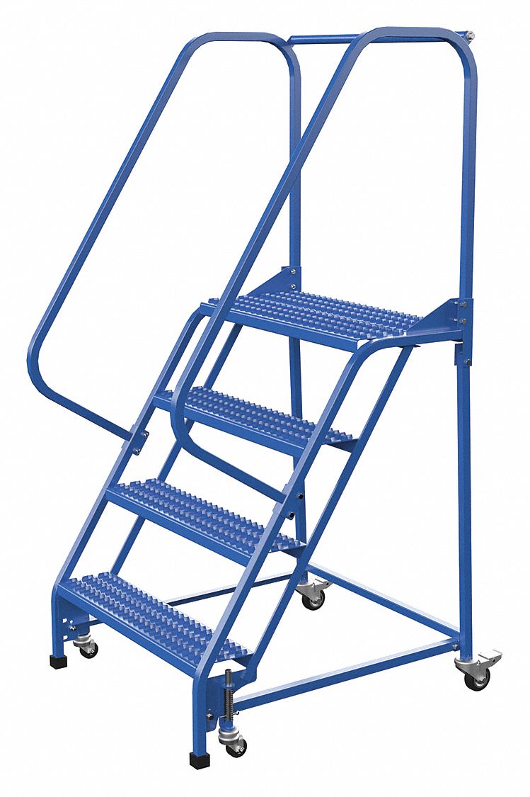 Vestil LAD-PW-32-4-G Portable Warehouse Ladder Grip 30-1/4" x 14" 4 Step, Blue