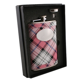 Visol"Valor" Plaid Flask Gift Set, 8-Ounce, Pink