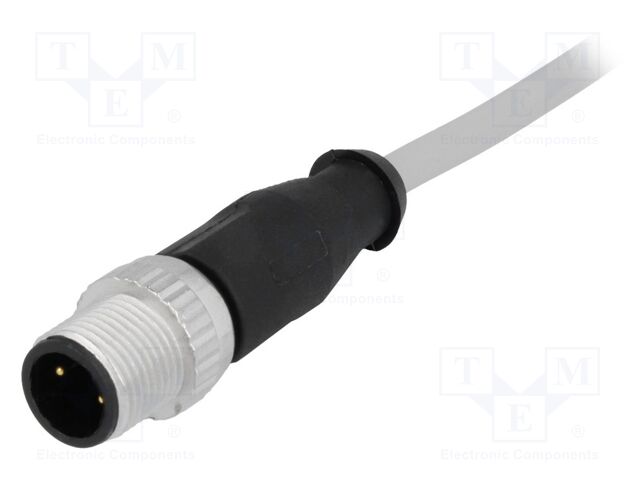 Harting M12 A-Code Single Ended Overmolded Cable Assembly, 3Pin, Straight Male, Pvc Gray, 2.0M - 21348400383020