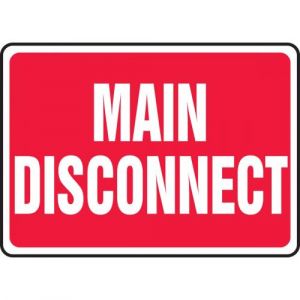 10" x 14" Aluminum Sign: "Main Disconnect" Give directional guidance to workers on where they can locate the main disconnect. Aluminum (VA) Aluminum withstands wash downs, harsh elements, abusive conditions, and features good chemical, abrasion, and impact resistance. Aluminum is excellent for indoor and outdoor usage, making it ideal for a wide variety of industrial-strength applications. All Aluminum signs feature Accuform's TedLex liquid-based UV-protective coating, included at no charge. TedLex is perfect for indoor and outdoor use, prevents fading, and resists chemicals, abuse, and graffiti. Aluminum signs provide the strength of metal, yet never rust. Aluminum withstands wash downs, harsh elements, and abuse.