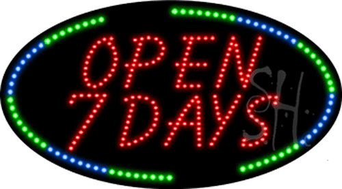 | Feature | Open 7 Days Animated LED Sign is high impact, eye catching, real LED sign. |
