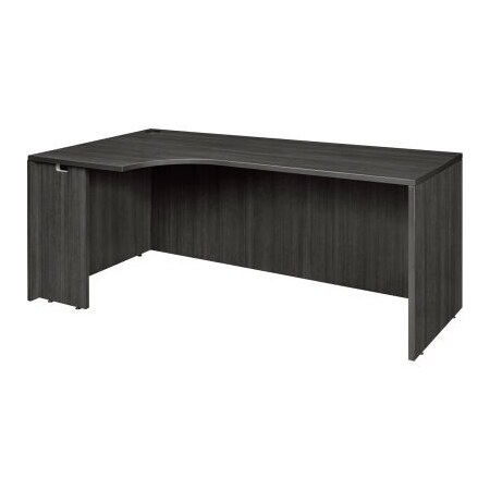 Legacy desk shells are the framework for a complete office. Customize with pedestals, returns, bridges or other storage options. This 71-inch long corner credenza shell is part of a classic corner workstation and has a curved center for a seamless transition to the return. This desk shell is not reversible and the return must be attached to the left hand side of the desk. Two wire management grommets keep cables clear of work areas. Adjustable glides on the bottom of the base keep the desktop level and are easy to adjust. Finished in an stylish Ash Grey laminate, this desk shell coordinates with other Legacy furniture. The Legacy collection is constructed of a 1-inch thick thermal fused melamine laminate with a 3-millimeter commercial grade matching PVC edge. Laminates are scratch, stain and scald resistant. Legacy casegoods are backed by a 10-year limited manufacturer's warranty.