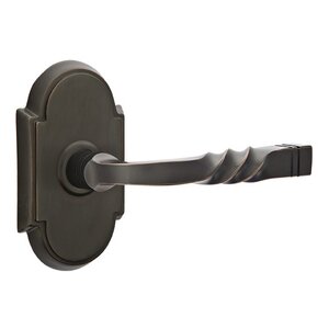 Brass Designer Levers Collection - Passage Right Handed Sante Fe Lever With #8 Rose in Oil Rubbed Bronze by Emtek Hardware - 8108238SFRHUS10B | MyKnobs