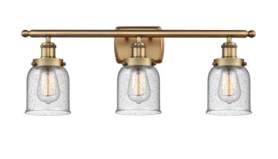 INNOVATIONS LIGHTING 916-3W-BB-G54-LED BALLSTON SMALL BELL 3 LIGHT 26 INCH SEEDY GLASS VANITY LIGHT, BRUSHED BRASS, LED