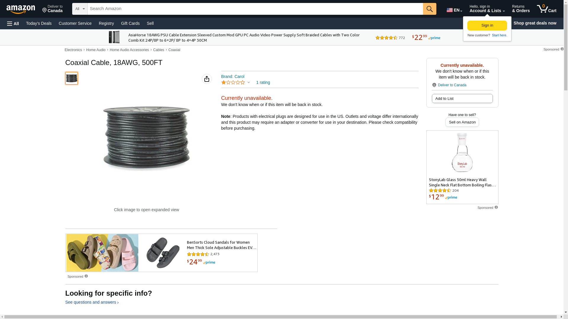 - <b>Price For:</b> Each <b>Jacket Color</b>: Black <b>Wire Gauge</b>: 18AWG <b>Conductor Area CSA</b>: - <b>No. of Max Strands x Strand Size</b>: Solid <b>Reel Length (Imperial)</b>: 500ft <b>Reel Length (Metric)</b>: 152.4m <b>Jacket Material</b>: PVC <b>Conductor Material</b>: Copper Coated Steel <b>External Diameter</b>: 7.42mm <b>Coaxial Cable Type</b>: RG6 <b>Impedance</b>: 75ohm <b>Product Range</b>: -