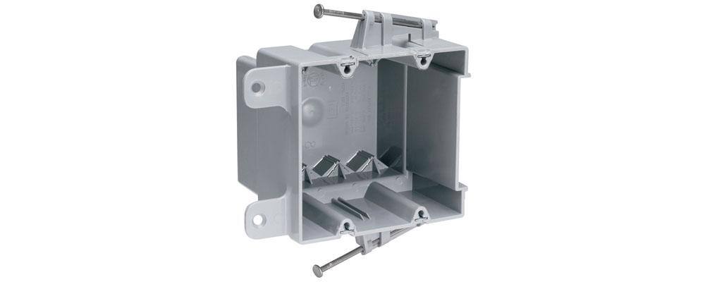Pass & Seymour S2-35-RAC Switch/Outlet Box, 2-Gang, Depth: 3-5/8", Nail-On, Non-Metallic