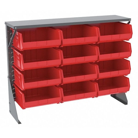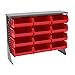 Akro-Mils 30650GY250R Low Profile Floor Rack, 1-Sided, Shelf with 12 AkroBins, Gray/Red