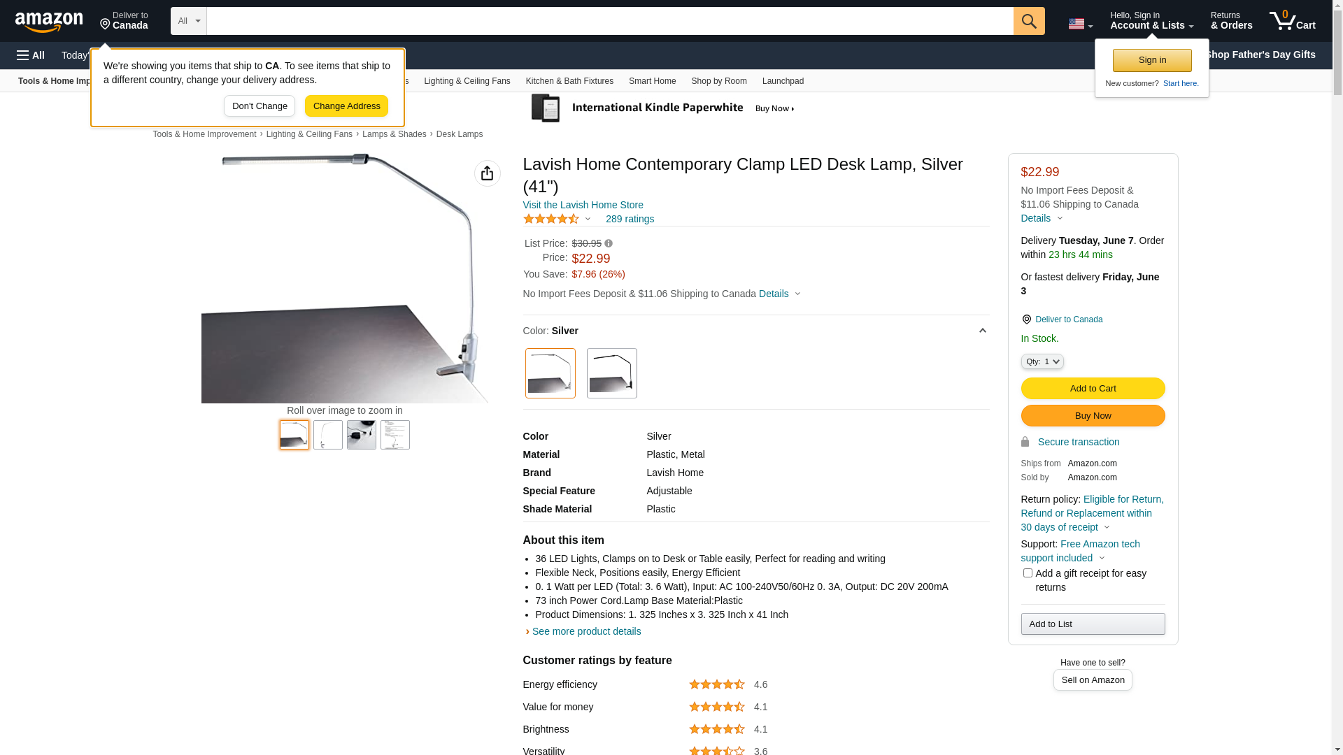 Lavish Home 41" Plastic LED Clamp Desk Lamp, Silver | Quill.com