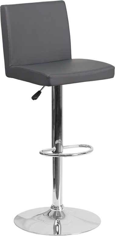 Flash Furniture Contemporary Vinyl Adjustable Height Barstool with Panel Back and Chrome Base, 1 Pack, Gray