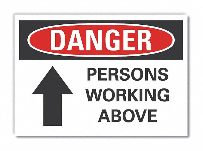 Danger Sign, Vertical Rectangle, Number of Printed Sides 1, English, Sign Format Traditional OSHA, Sign Legend Persons Working Above, Sign Legend Background Color White, Sign Legend Style Symbol and Text