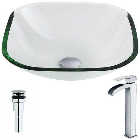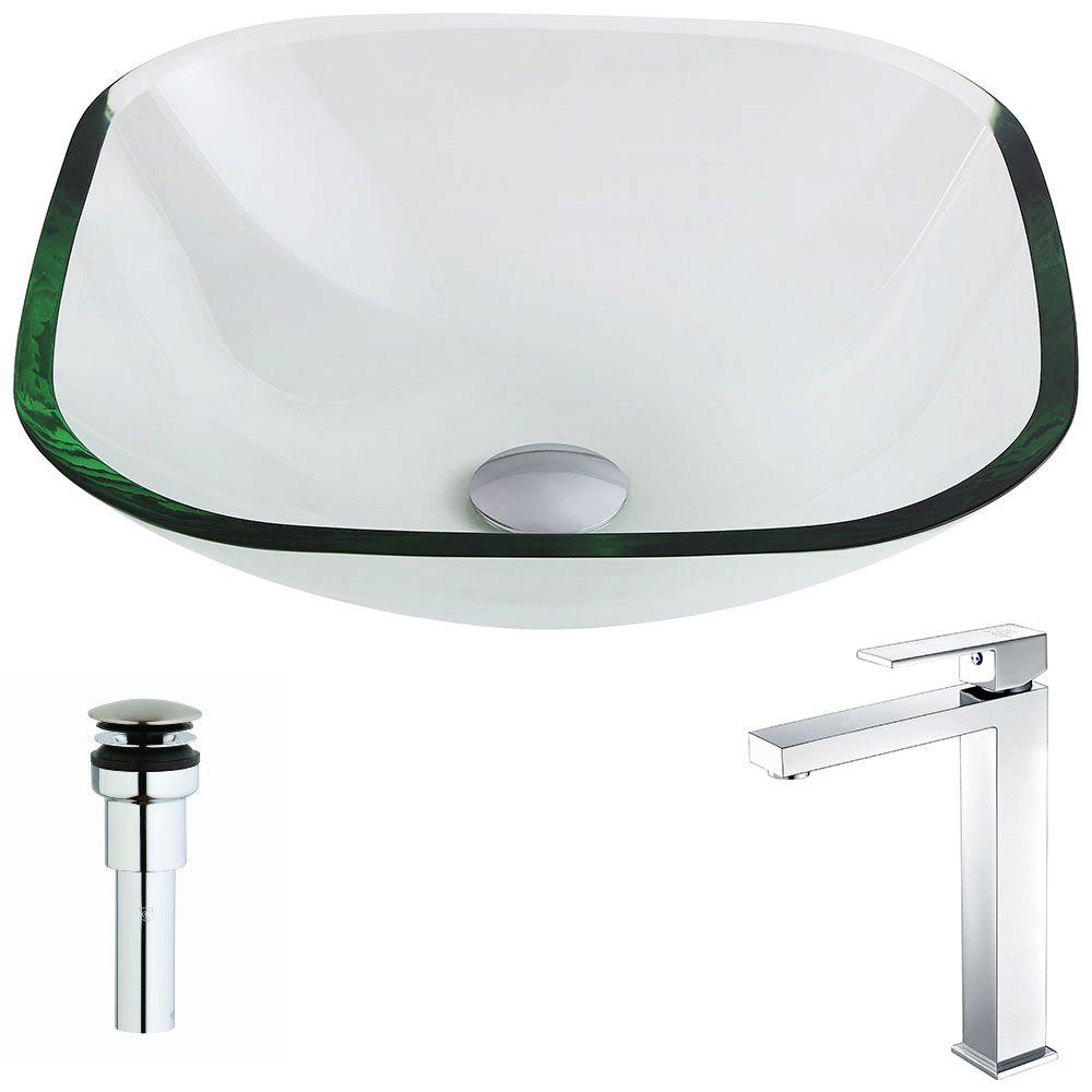 Tempered Glass Vessel Sink with Single Hole Single Handle Faucet - Clear - Cadenza Series LSAZ074-097 - ANZZI