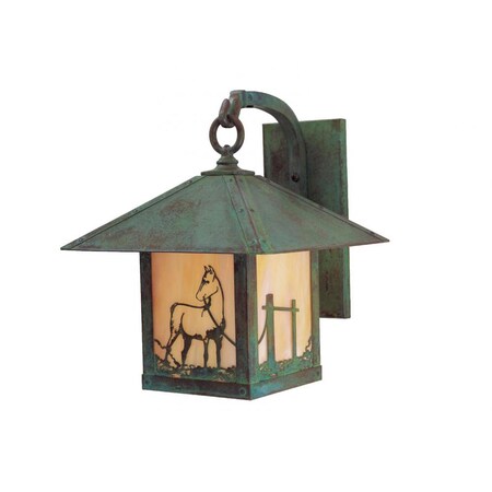 Arroyo Craftsman TRB-12HSOF-BZ Timber Ridge Wall Bracket with Horse Filigree, 12", Bronze Metal Finish, Off White Glass