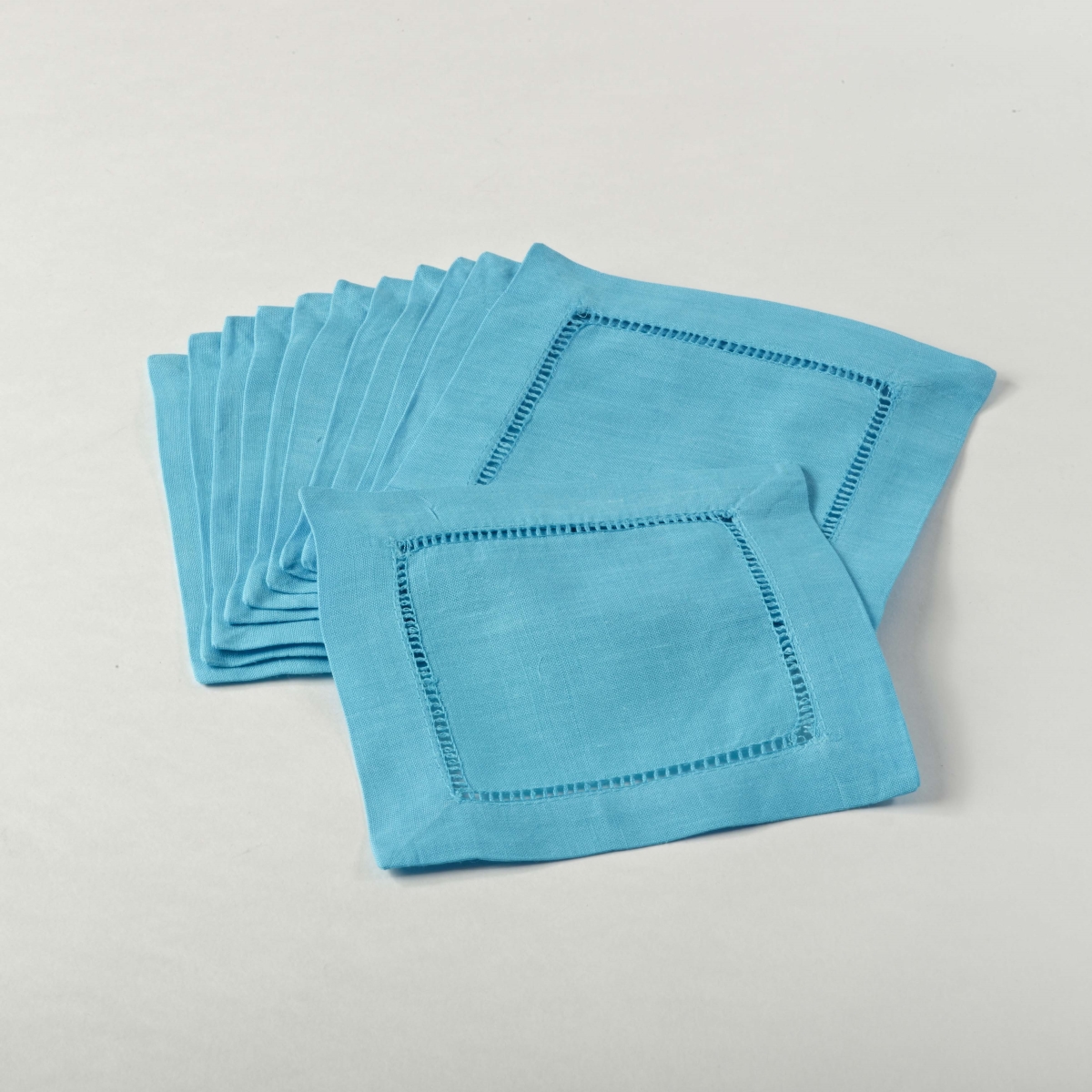 SARO LIFESTYLE 6100C.TQ6S 24/7 Everyday Collection Hemstitched Cocktail Napkin (Set of 12), 6" Square, Turquoise