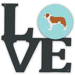 Carolines Treasures BB3776WALV 11.5 x 11.75 in. Saint Bernard Checkerboard Blue Metal Artwork Love Wall Decor