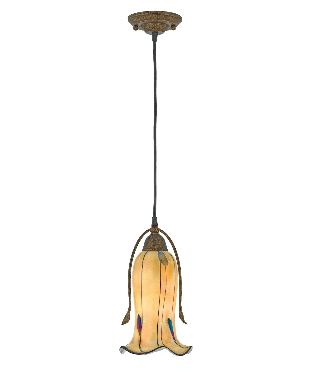 Quoizel CASL1507ML Casanova W, Slender Leaf Glass, 12-Inch Cord, Hung Piccolo Pendant with Slender Leaf Art Glass, Malaga Finish