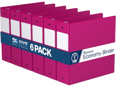 Davis Group Premium Economy 3" 3-Ring Non-View Binders, Pink, 6/Pack (2314-43-06) | Quill.com