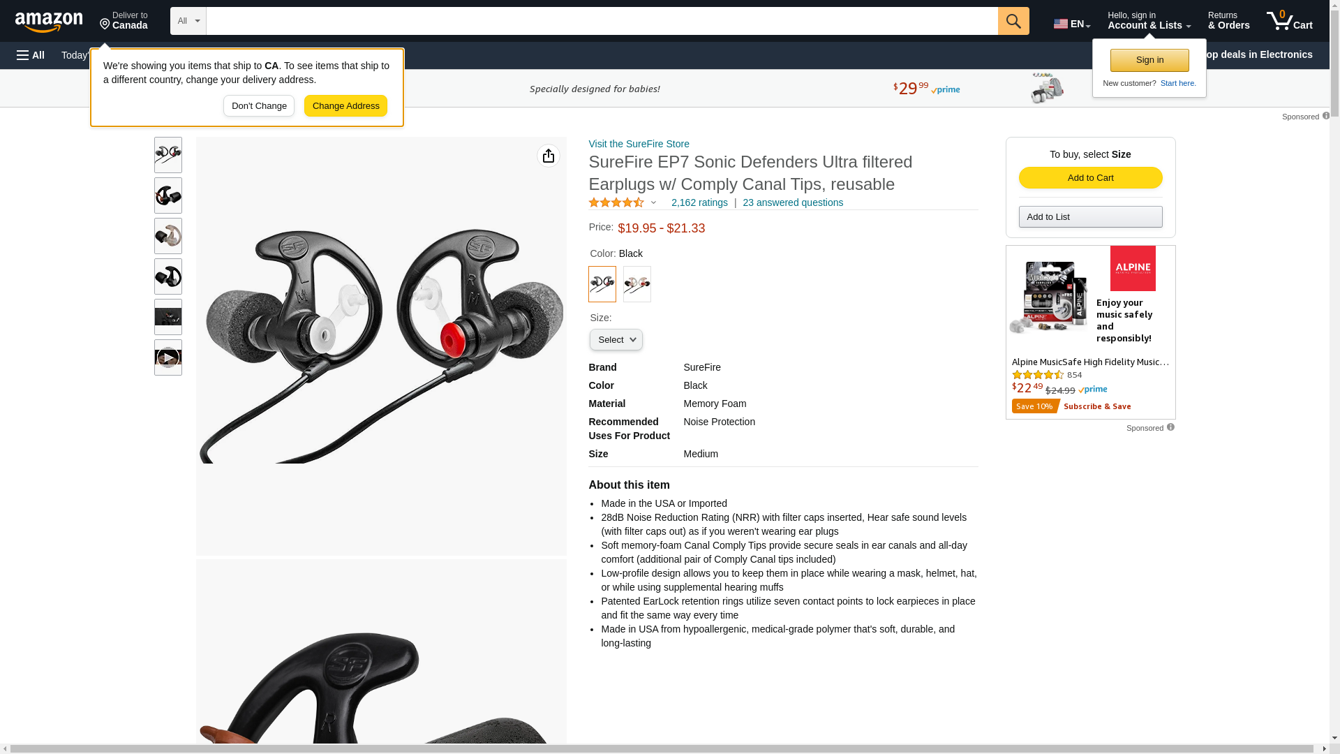 Surefire EP7 Sonic Defenders Ultra Earplugs, Foam Tipped, Orange Small, 1 Pair Md: EP7-OR-SPR - 11048297