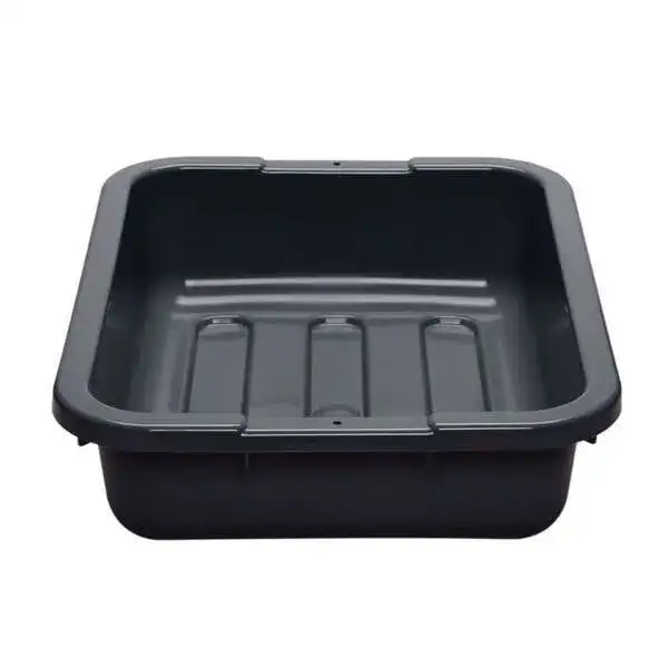 Cambro Cambox bus boxes are a highly needed item in any kitchen. Bus boxes are great for cleaning off tables, holding dishes for wash or transporting dishes. To save storage space Cambro designed all of their bus boxes to be stackable. Cambox bus boxes were made using polyethylene that is dishwasher safe. - Bus box- Single compartment- Made polyethylene plastic- Rectangular shape- Side handles- Dishwasher safe- Stackable- Color: Black- Dimensions: 15-5/16"Wx19-15/16"Lx4-15/16"H- Case of 12