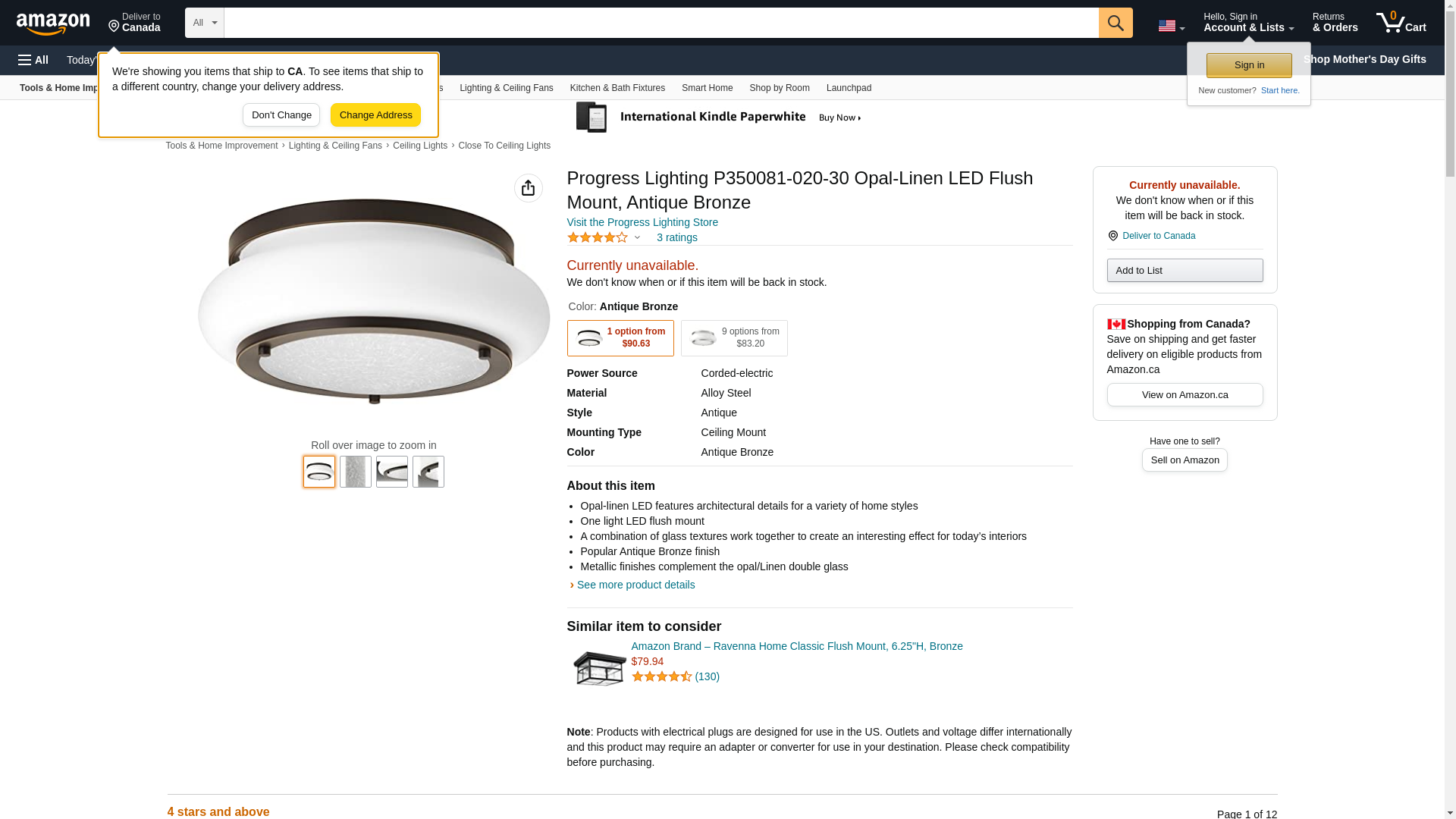 Progress Lighting P350081-020-30 Opal-Linen LED Flush Mount, Antique Bronze