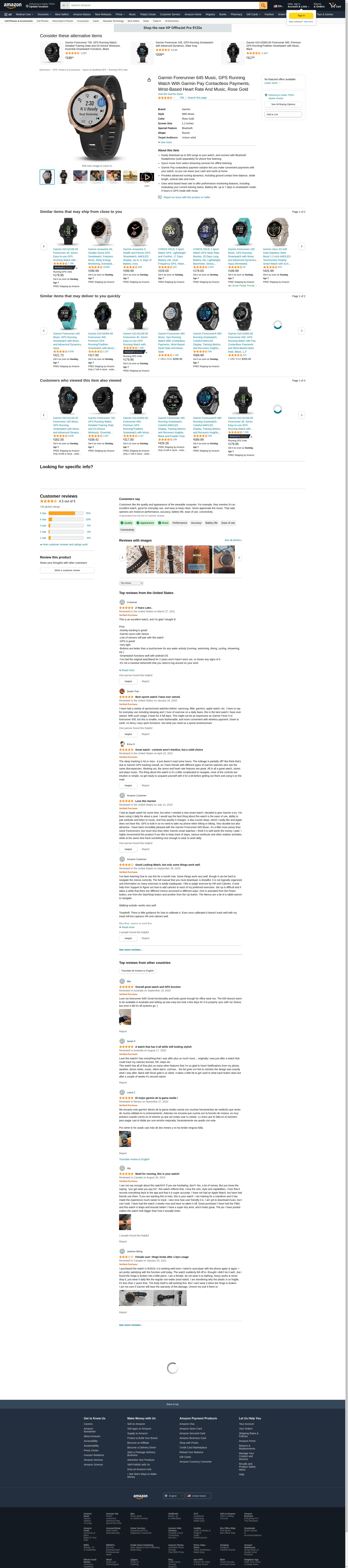 Garmin Forerunner 645 Music, GPS Running Watch With Garmin Pay Contactless Payments, Wrist-Based Heart Rate And Music, Rose Gold