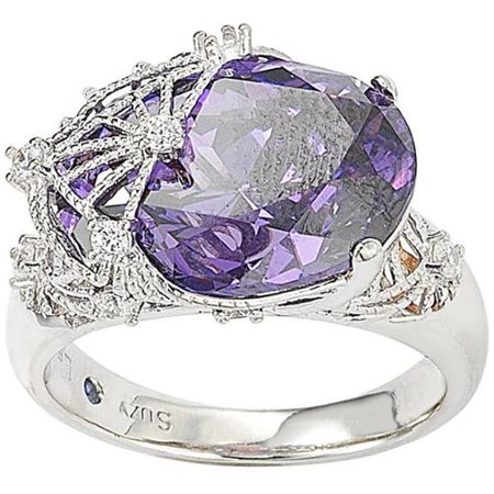 <ul> <li>Gemstone colors: Purple, white</li> <li>Gemstone shapes: Oval, round</li> <li>One prong-set oval-cut cubic zirconia</li> </ul>
