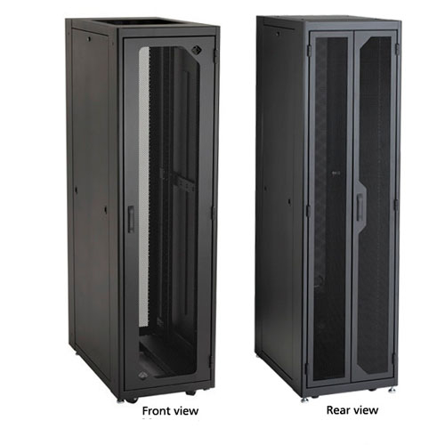| Feature | Elite Data Cabinet, 84"H (45U) x 24"W x 36"D, 10-32 Rails, PLEXIGLAS Front Door, Mesh Rear Door, Solid Side Panels, 6-Fan Top Panel, Keyed Locks |