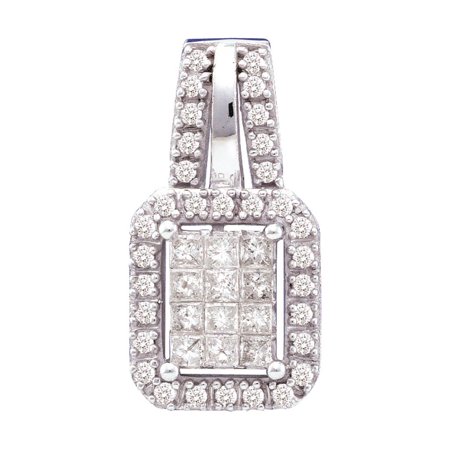 Ladies 14k YG Round Brilliant & Princess Cut Diamond Invisible Pendant 0.50CT